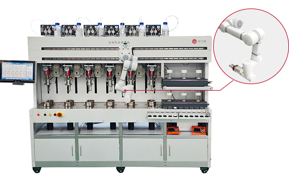 全自動(dòng)智能高壓反應(yīng)系統(tǒng) 配備多軸機(jī)械臂,可精準(zhǔn)實(shí)現(xiàn)自動(dòng)進(jìn)料、自動(dòng)取料、自動(dòng)傾倒,反應(yīng)釜可實(shí)現(xiàn)自動(dòng)開合、自動(dòng)升降、自動(dòng)密封。整套裝置全自動(dòng)運(yùn)行,無(wú)人化操作